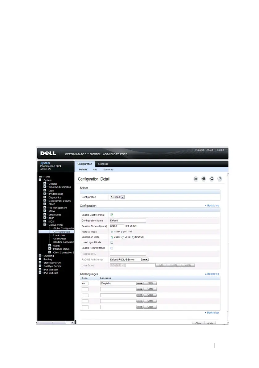 To display the Captive Portal Configuration page, click System