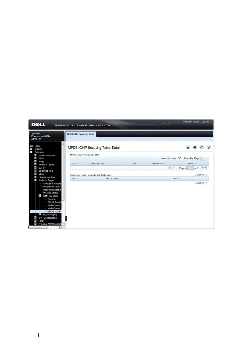 database (MFDB) IGMP Snooping Table and Forbidden Ports settings for