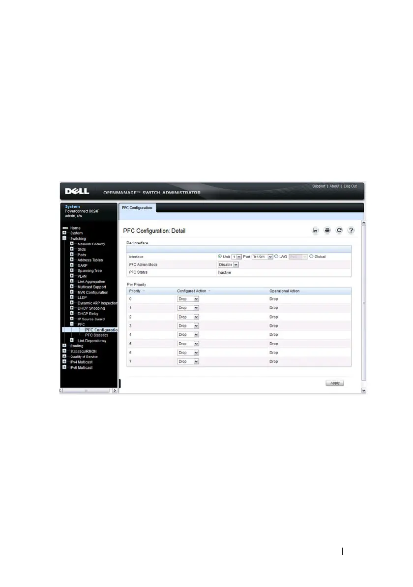 Use the PFC Statistics page to view the PFC statistics for interfaces on the