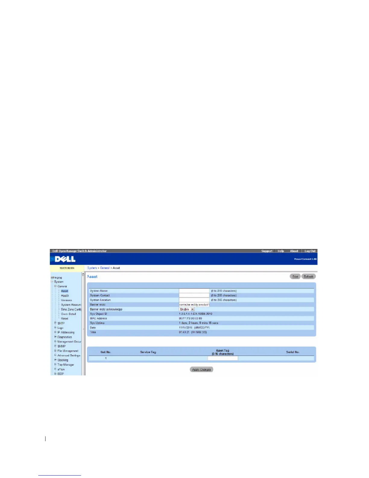 To display the Asset page, click System > General > Asset in the tree view.