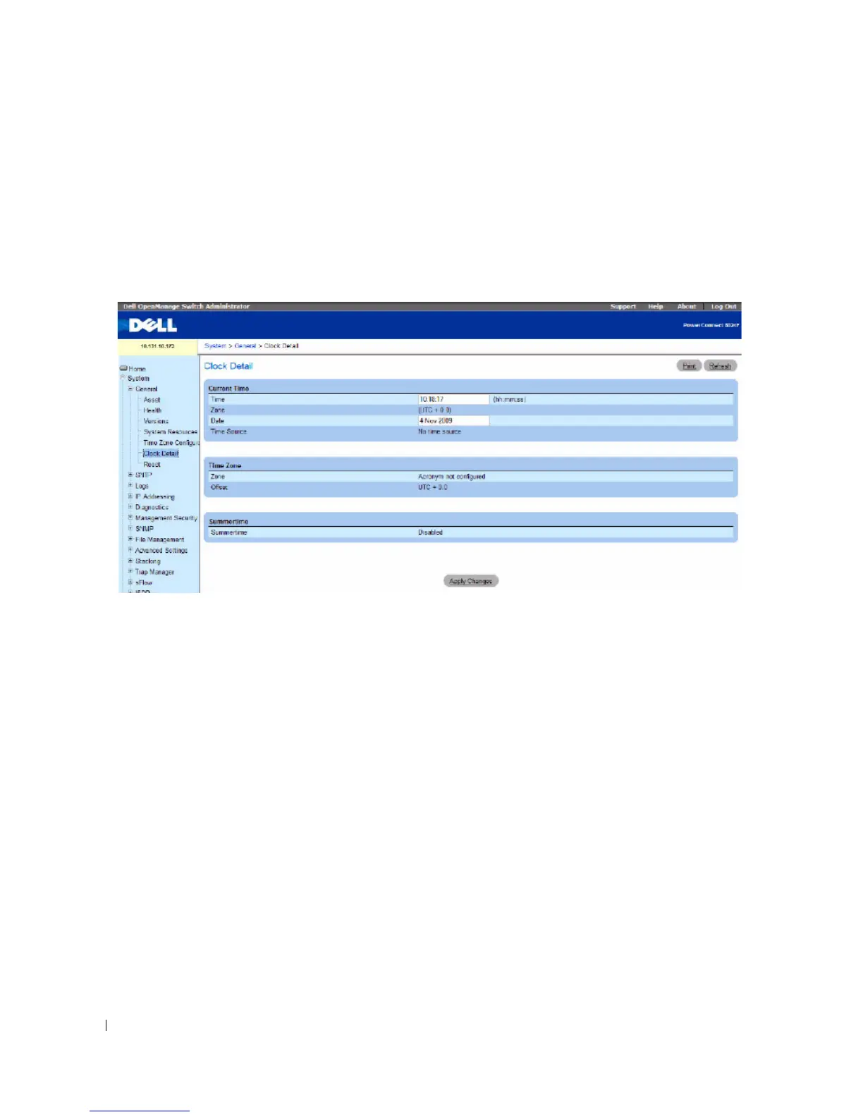 To display the Clock Detail page, click System > General > Clock Detail in the tree view.