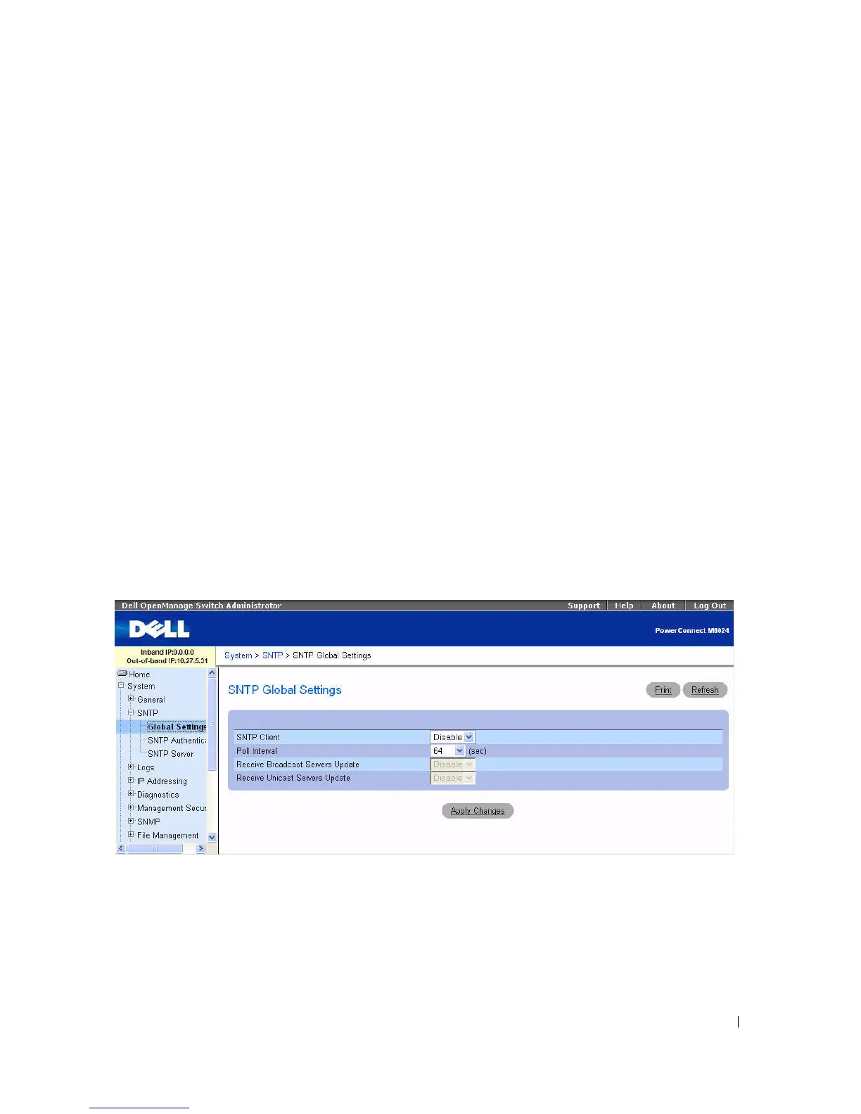The SNTP menu page contains links to pages that allow you to configure SNTP parameters.
