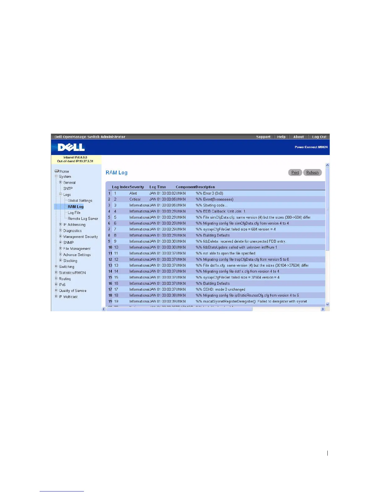 To display the RAM Log Table, click System > Logs > RAM Log in the tree view.