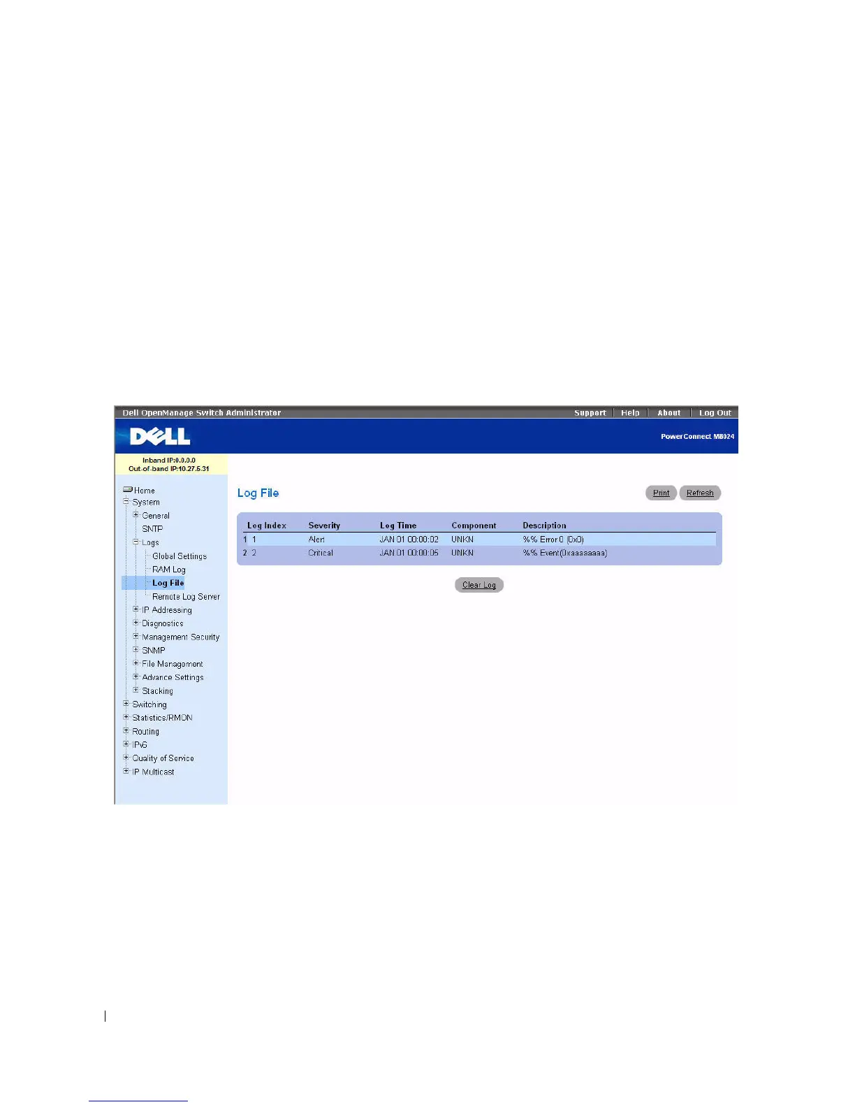To display the Log File, click System > Logs > Log File in the tree view.