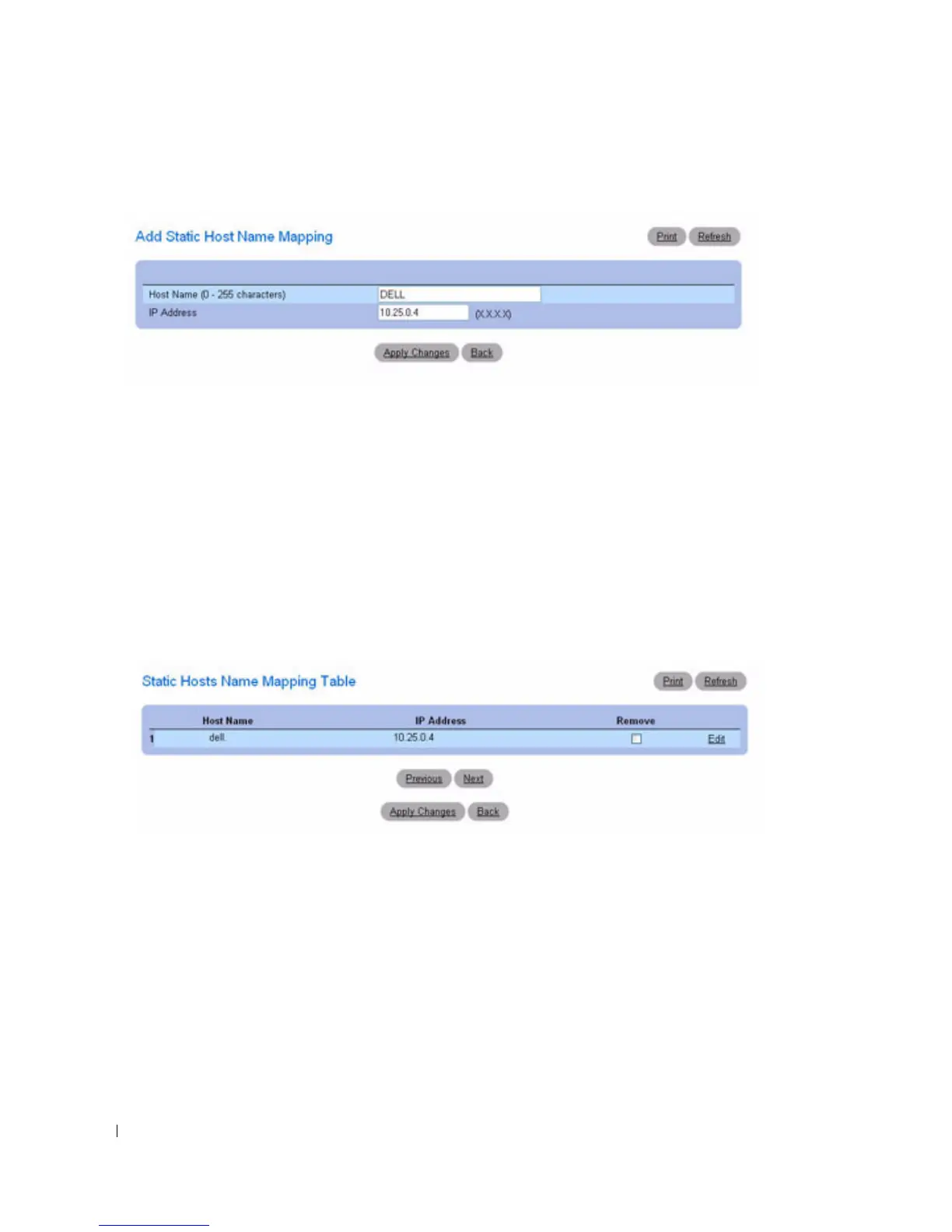 The Host Name Mapping Table entry is removed, and the device is updated.