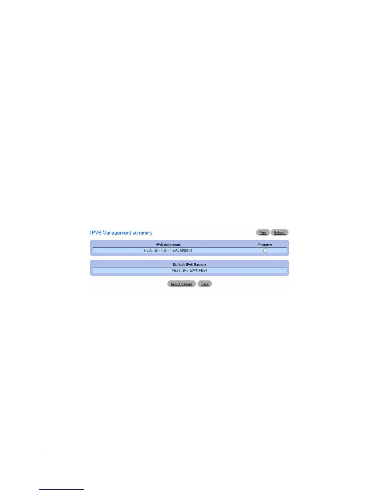 To remove an IPv6 Address, select the Remove option associated with the address, and click