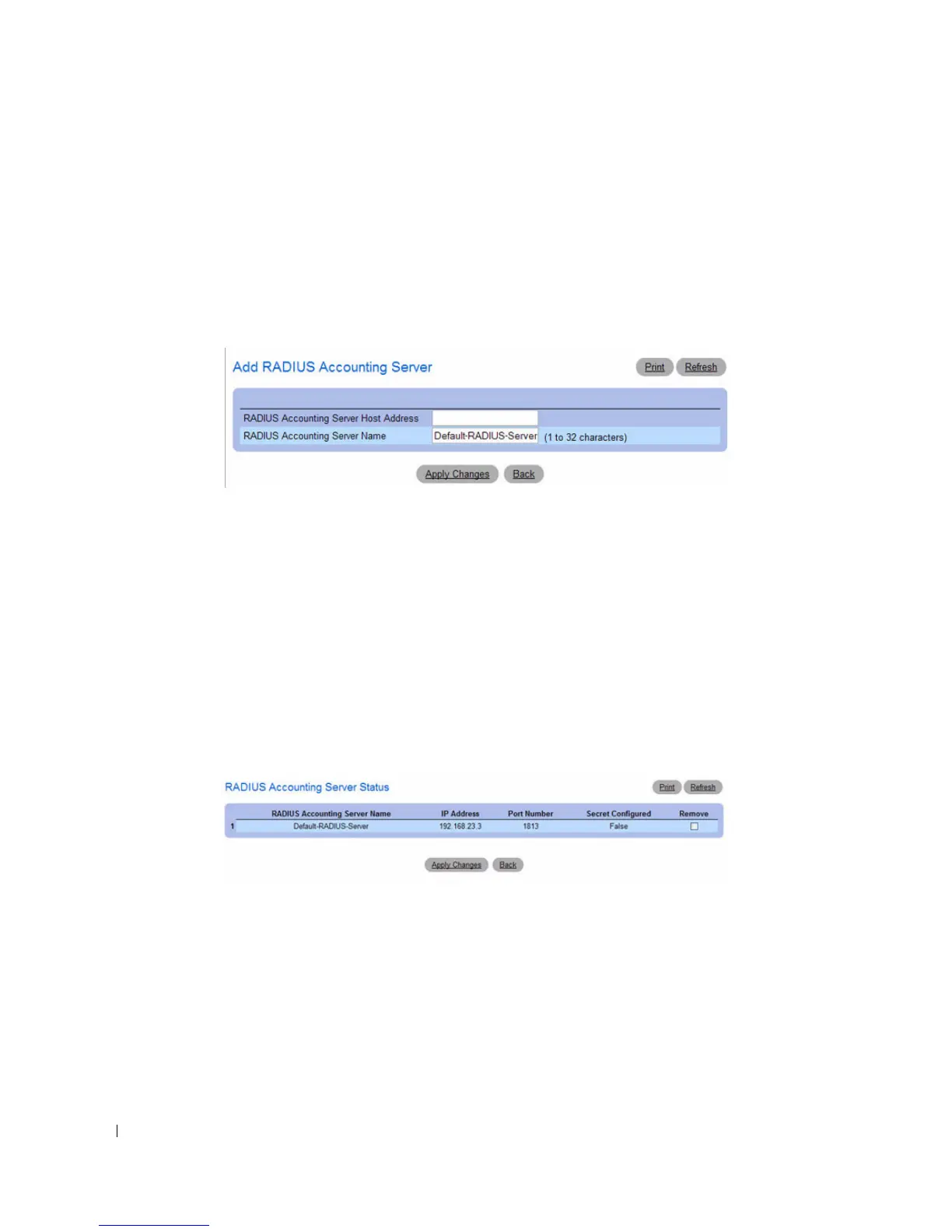 Viewing RADIUS Accounting Server Status and Removing a Accounting Named Server