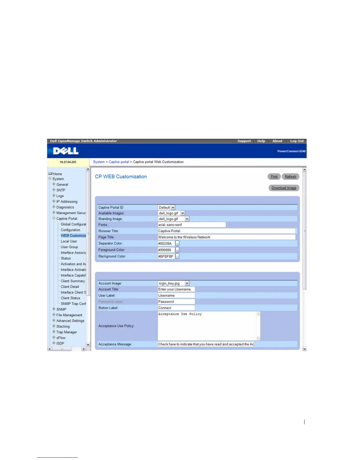 Web Customization page, click System > Captive Portal > Web Customization.