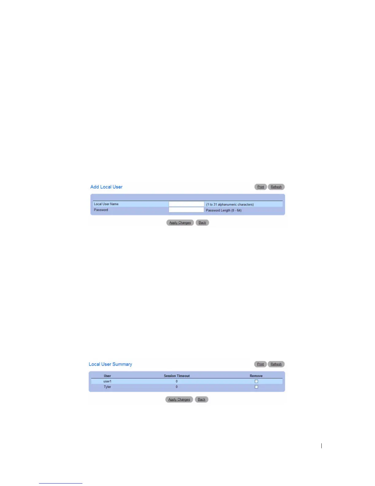 Displaying the Local User Summary Page