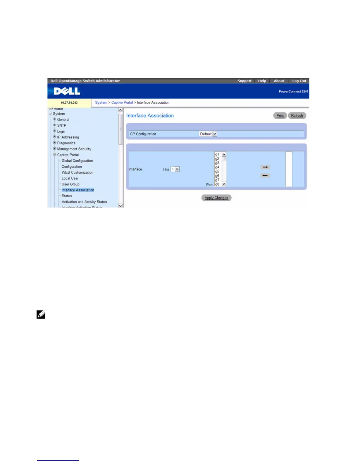 NOTE: When you associate an interface with a captive portal, the interface is removed from the Interface List. Each