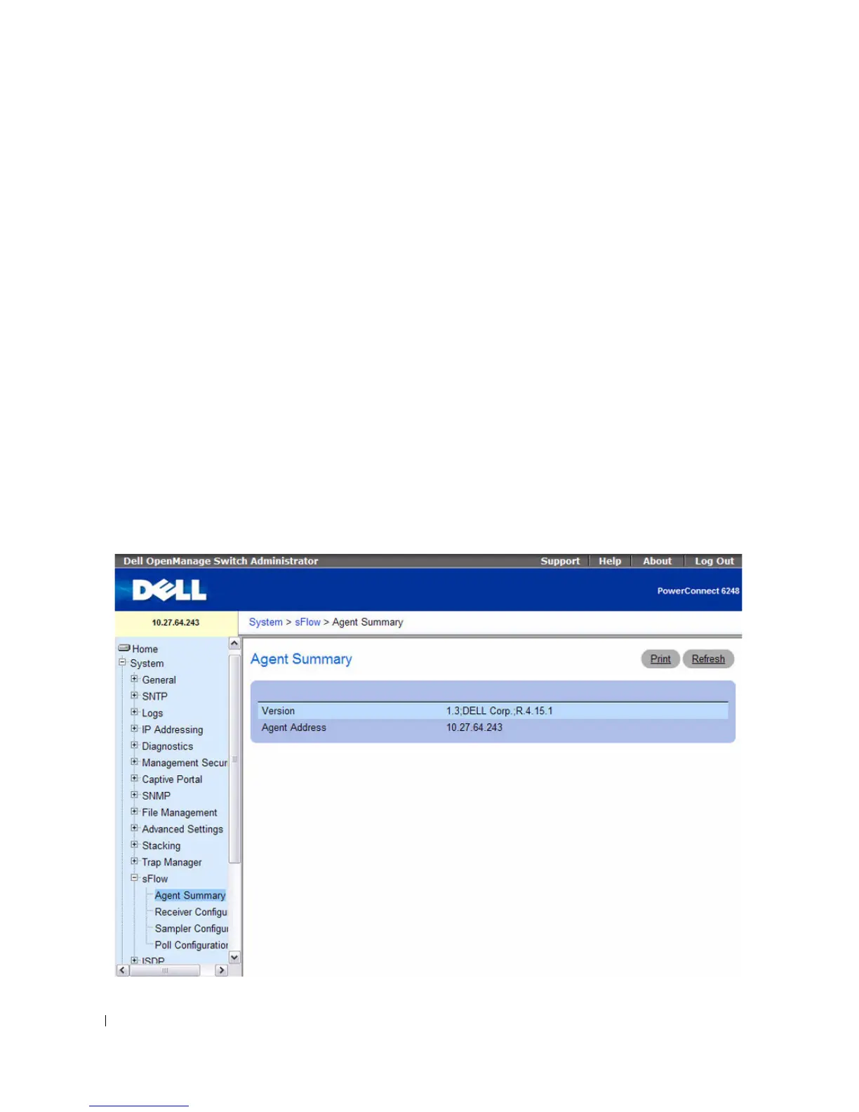 To access the sFlow Agent Summary page, click System > sFlow > Agent Summary in the navigation