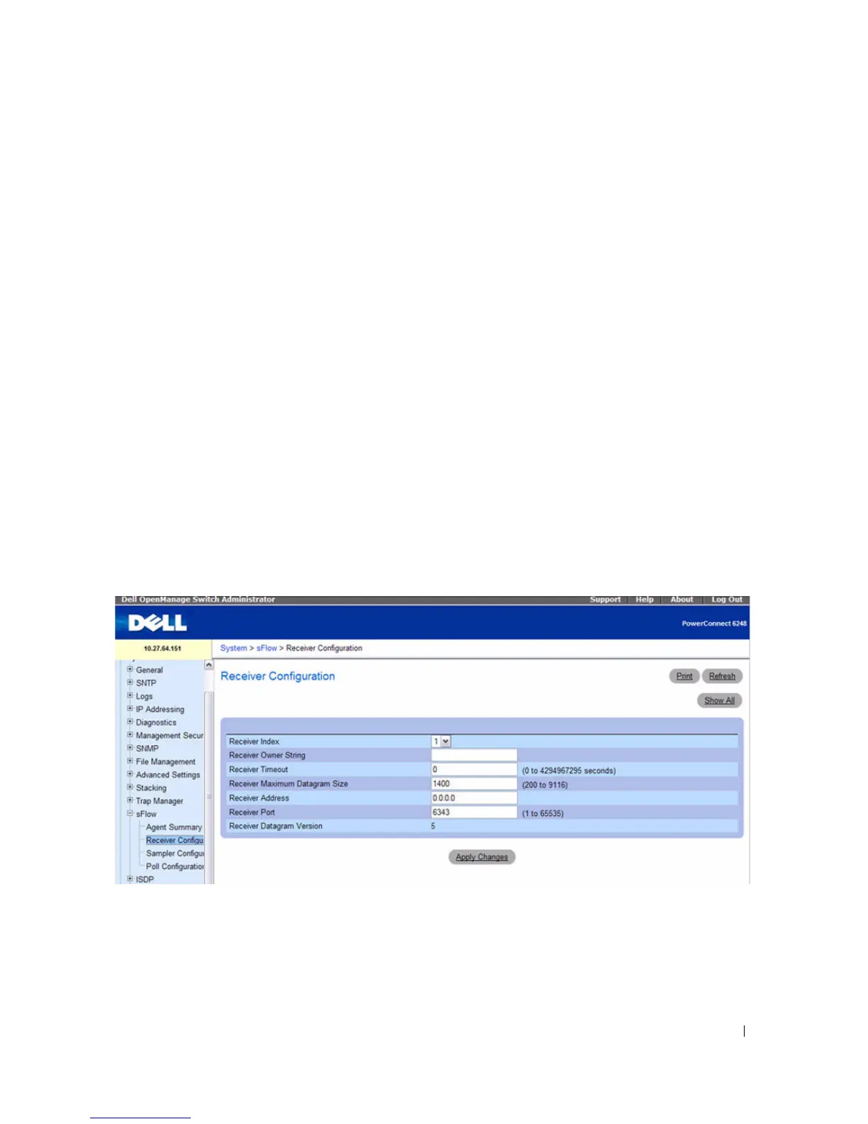 To access the sFlow Receiver Configuration page, click System > sFlow > Receiver Configuration in