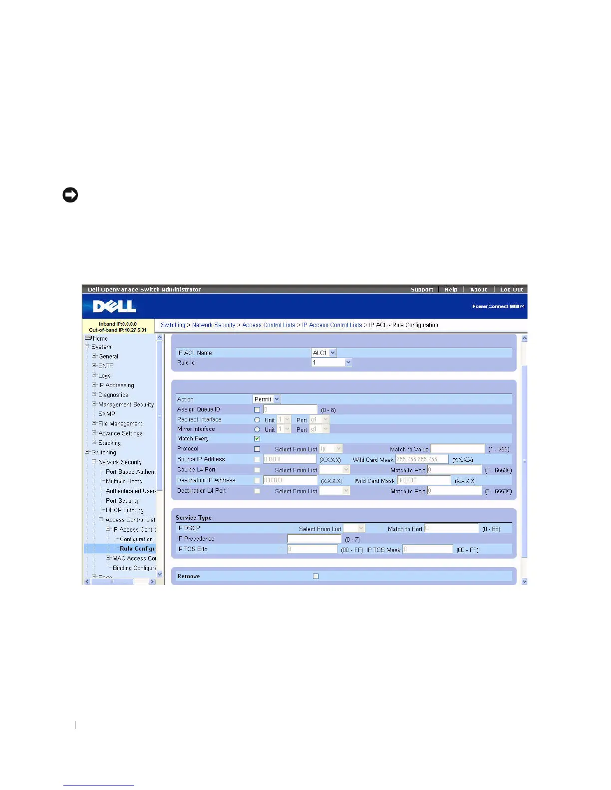 Use the IP ACL Rule Configuration page to define rules for IP-based ACLs. The access list definition