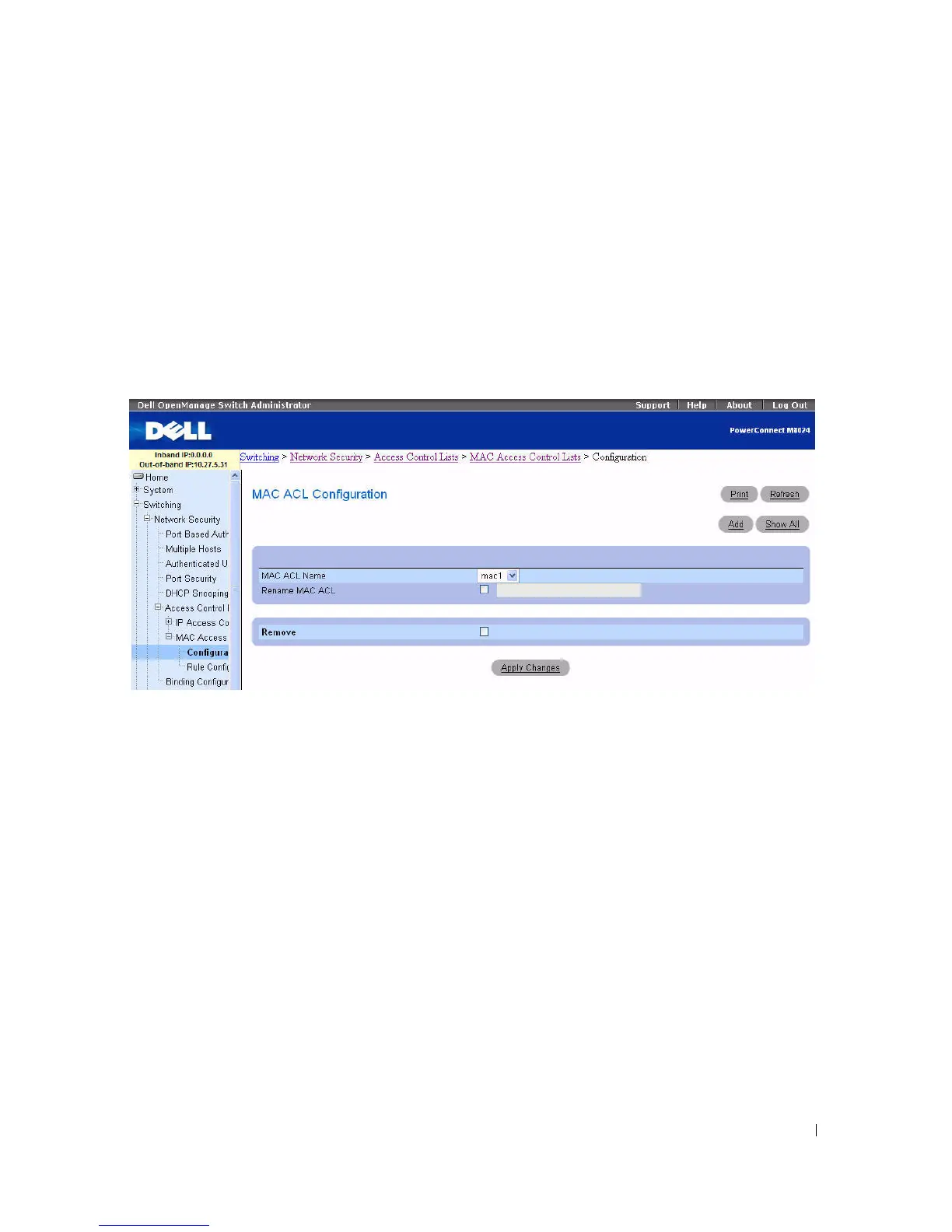 — Click this field, then click the Apply Changes button to delete the MAC ACL listed in the