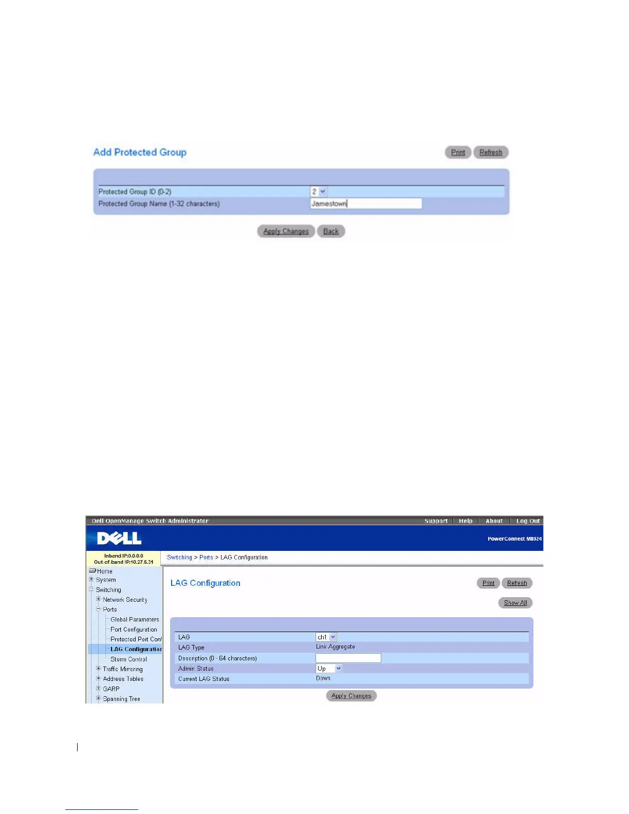 To display t he LAG Configuration page, click Switching > Ports > LAG Configuration in the tree view.