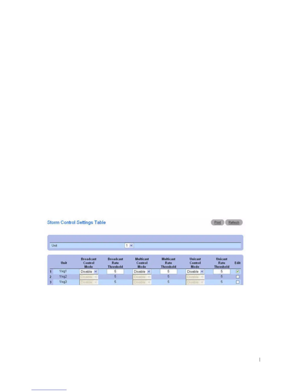 Figure 7-28. Storm Control Settings Table