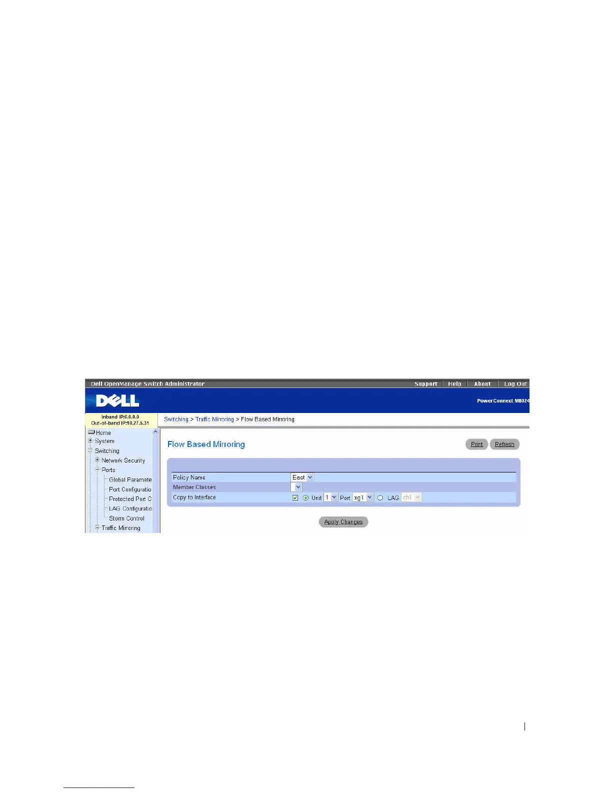 To display the Flow Based Mirroring page, click Switching > Traffic Mirroring > Flow Based Mirroring