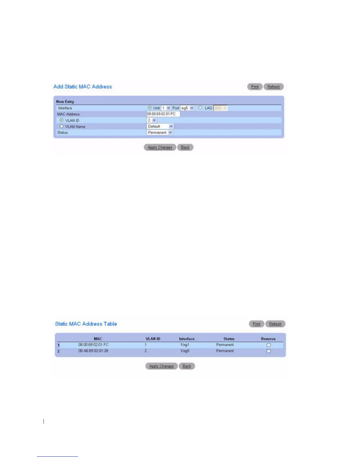 Figure 7-34. Static MAC Address Table