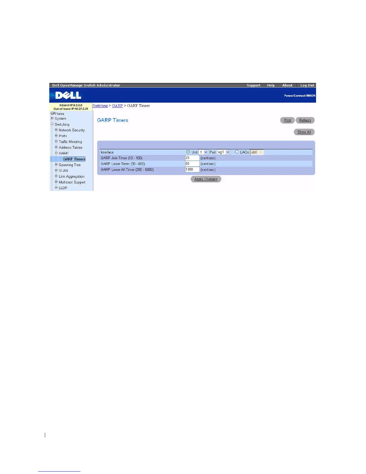 The parameters are copied to the selected ports or LAGs in the GARP Timers Table, and the device is