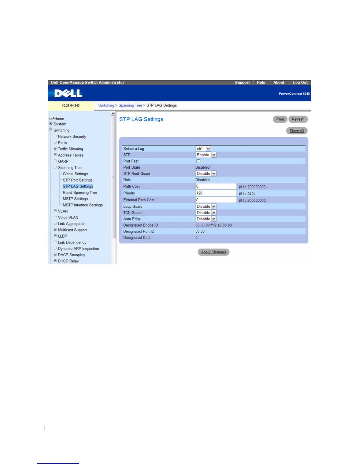 Figure 7-41. STP LAG Settings