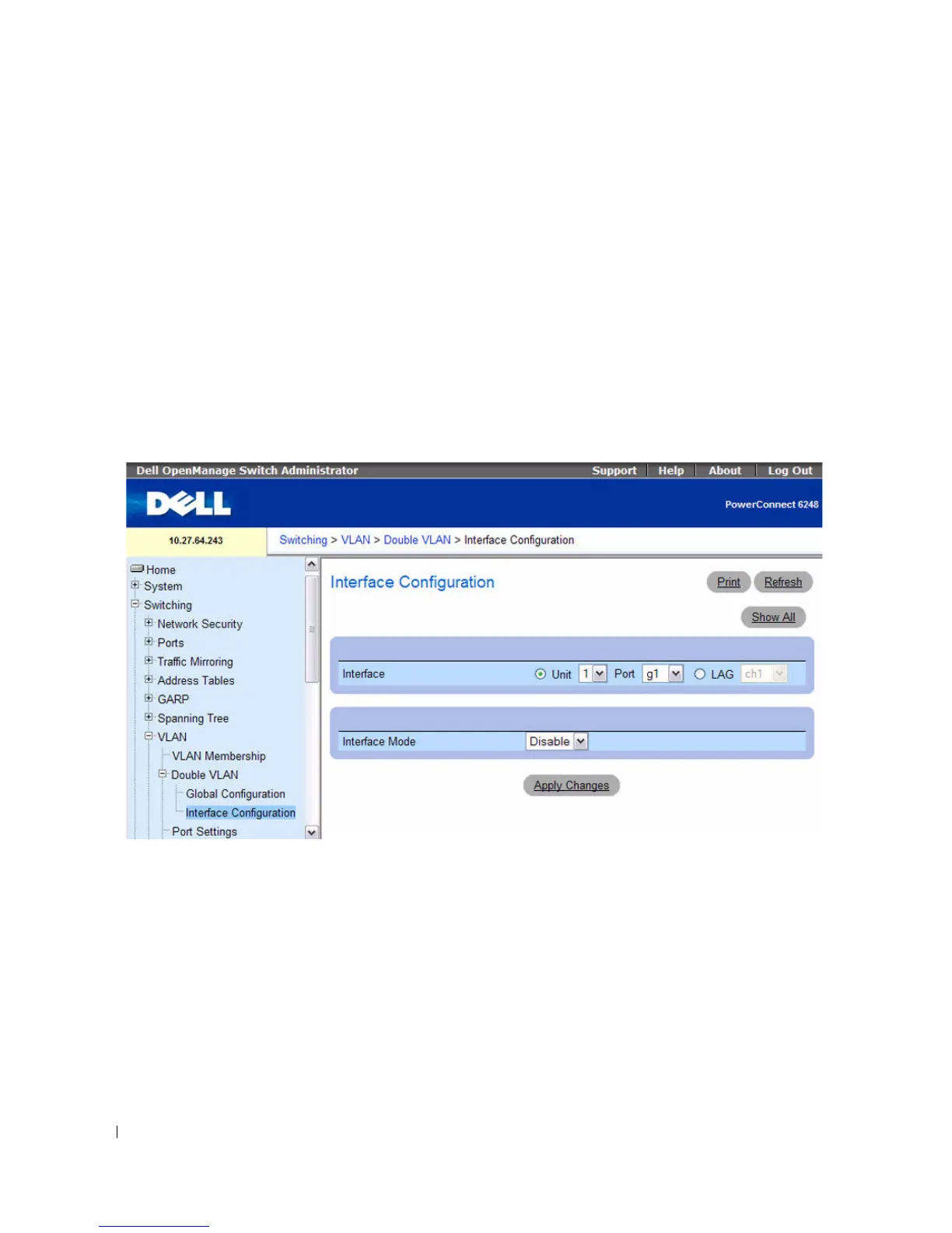 Use the Double VLAN Interface Configuration page to enable or disable Double VLAN mode on a