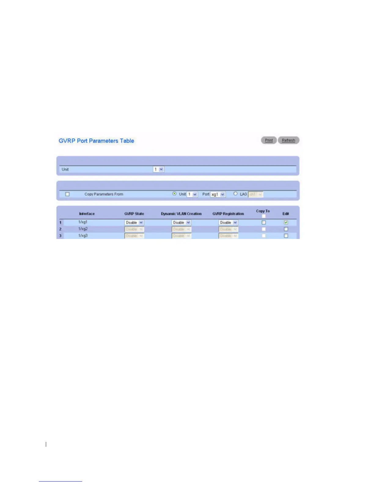 The GVRP Port Parameter settings are copied, and the device is updated.