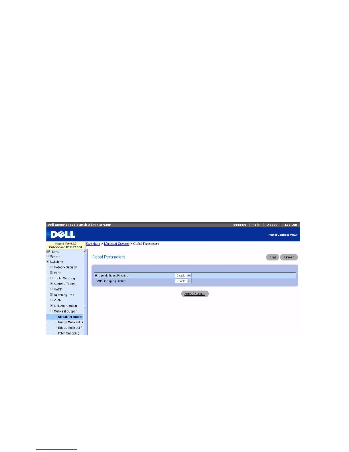 To display the Multicast Global Parameters page, click Switching > Multicast Support > Global