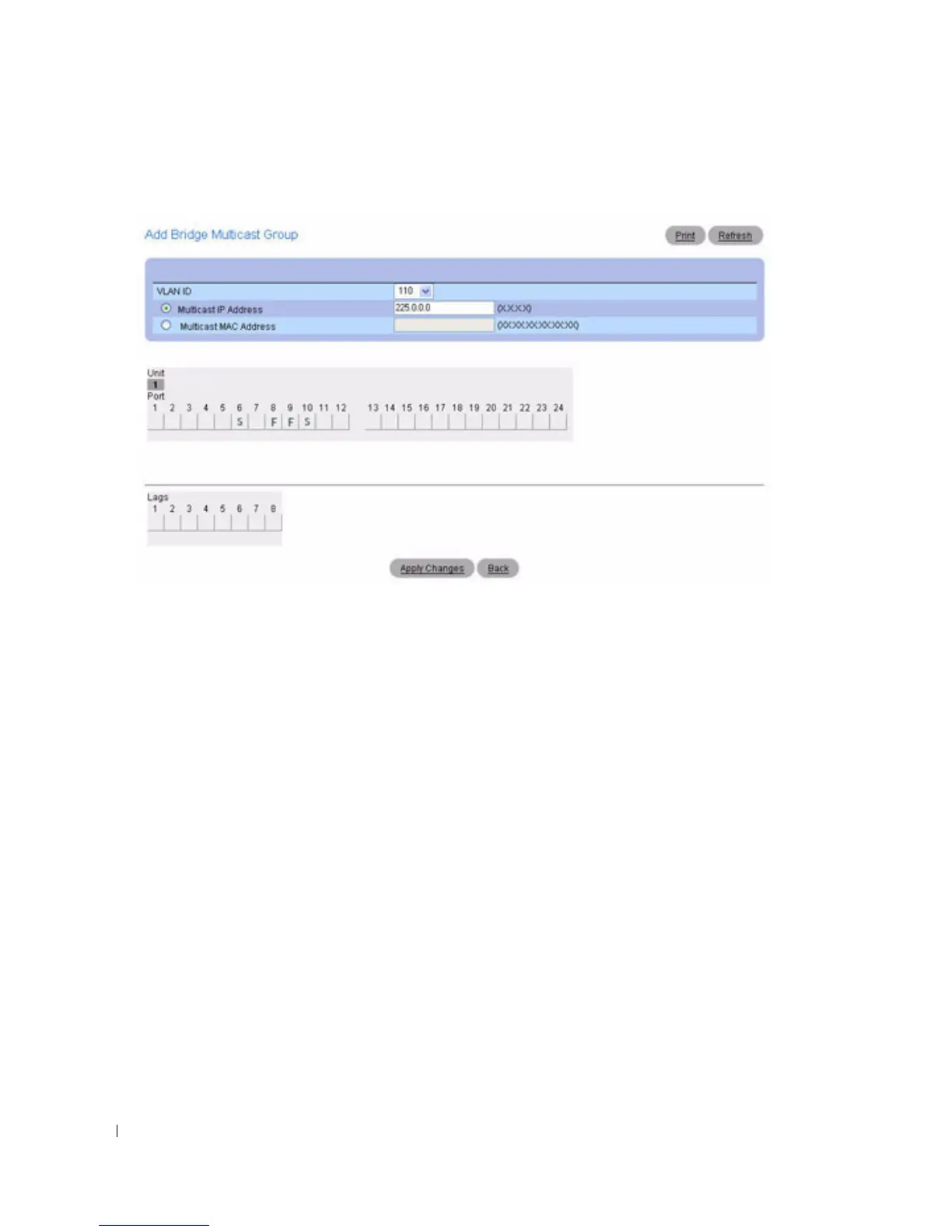 port/LAG. Each click toggles between S, F, and blank. (not a member).