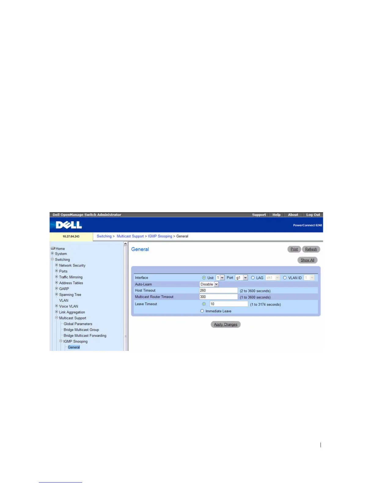 To display the General IGMP snooping page, click Switching > Multicast Support > IGMP Snooping