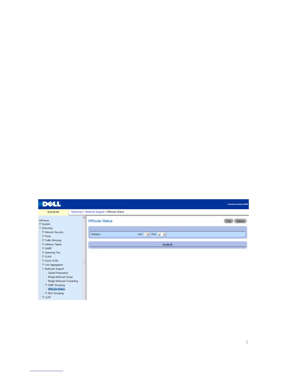 To access this page, click Switching > Multicast Support > MRouter Status in the navigation tree.
