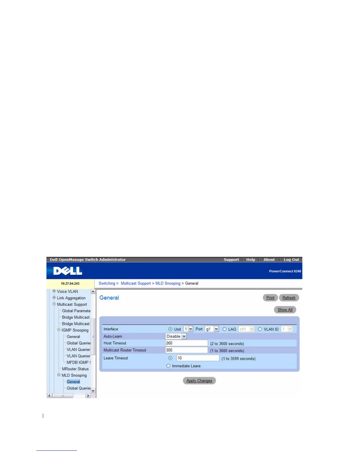 To access this page, click Switching > Multicast Support > MLD Snooping > General in the