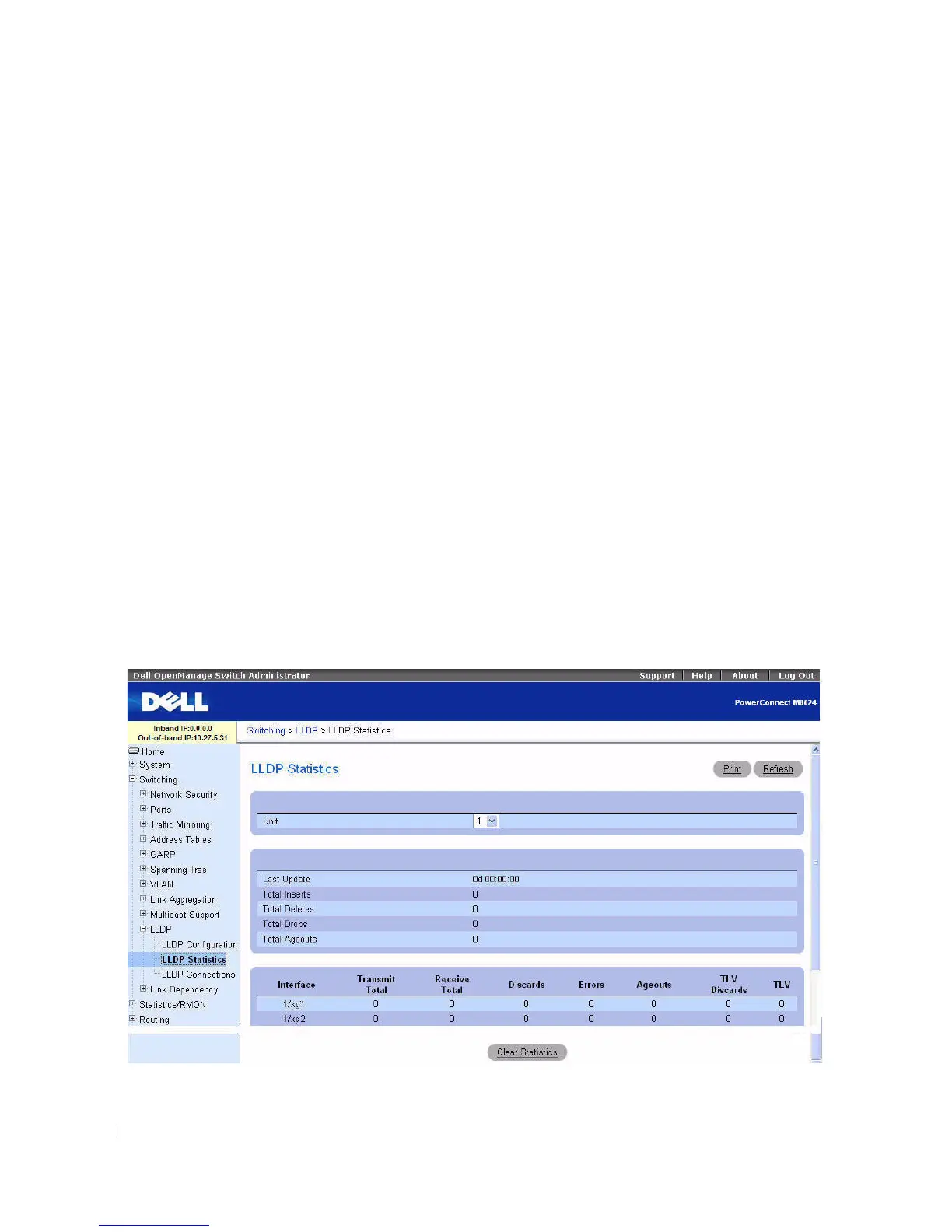 page, click Switching > LLDP > LLDP Statistics in the tree view.