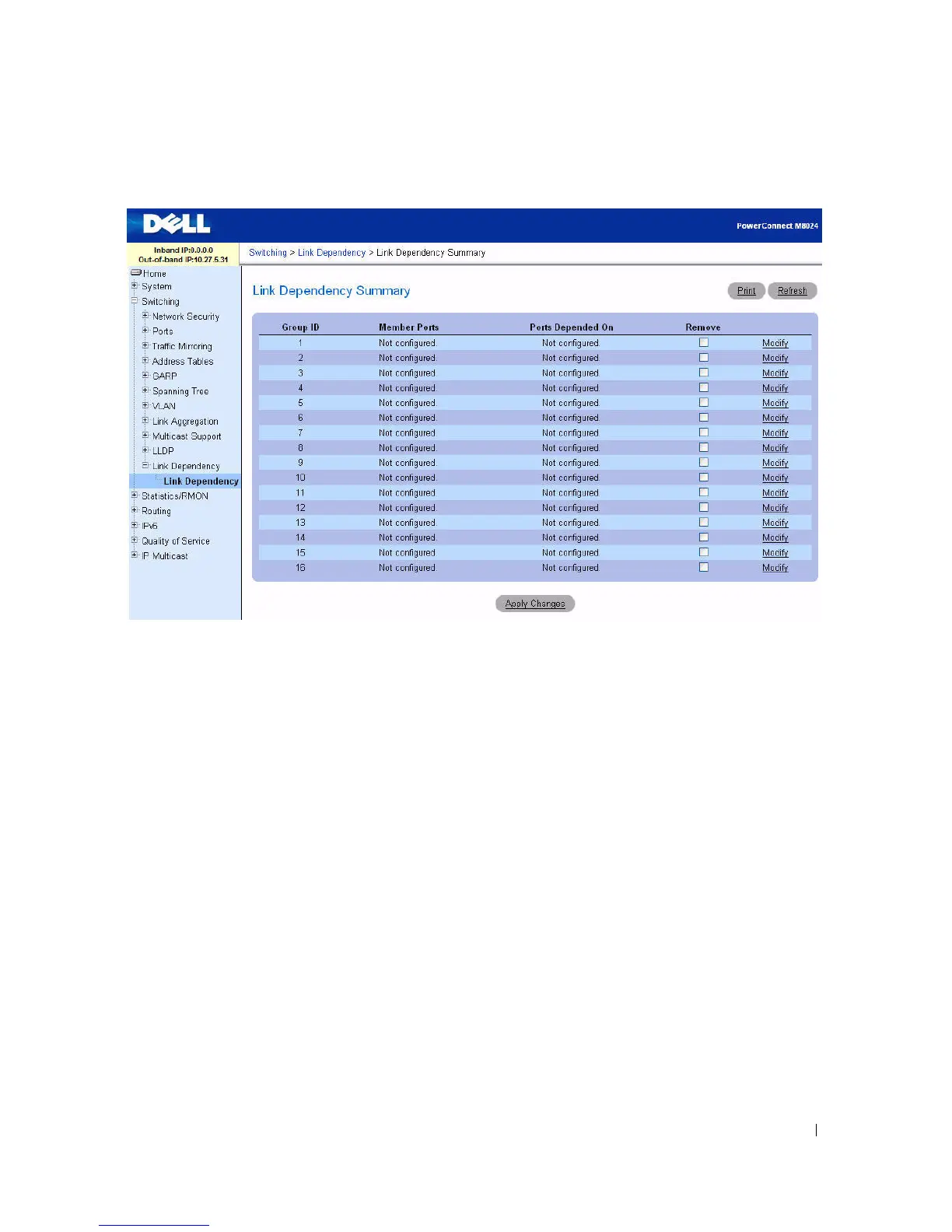 From the Group ID row for the Link Dependency group to configure, click the
