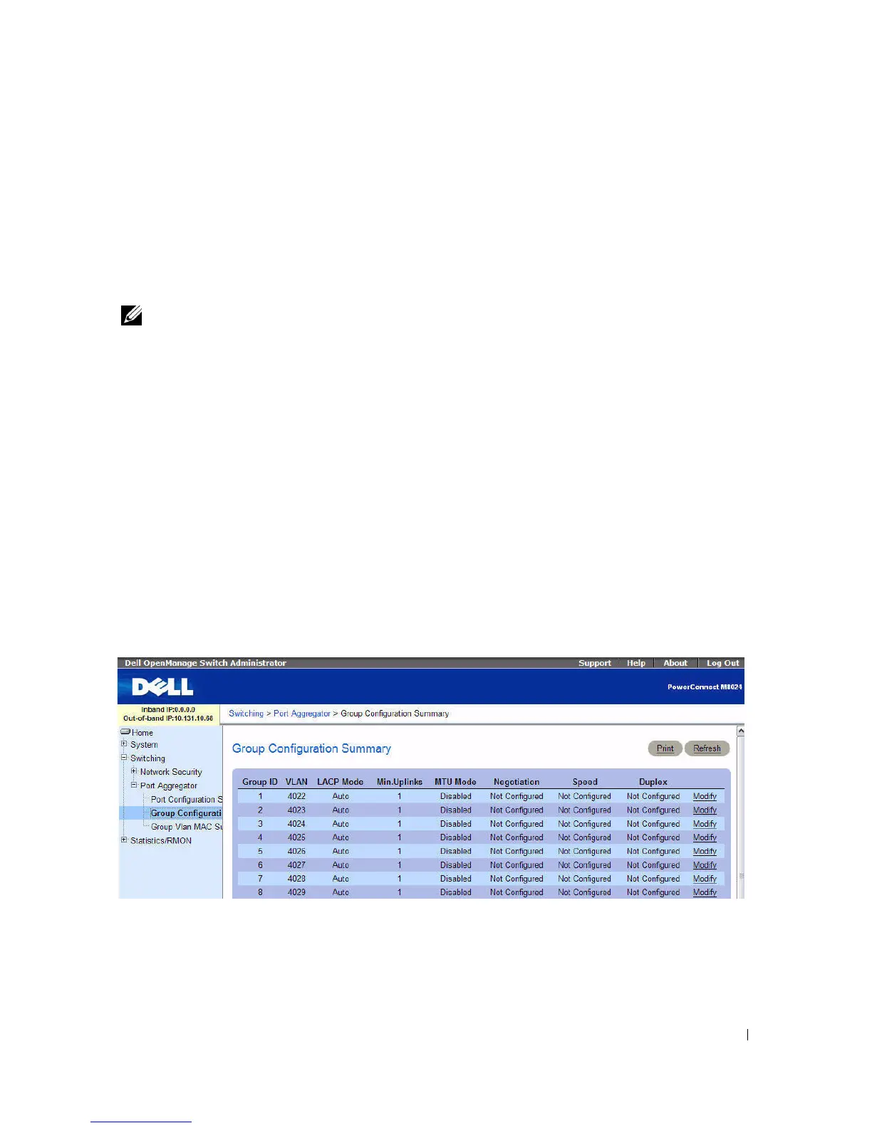 Note: To delete a single port from a group, click Modify to access the Port Configuration page, delete the