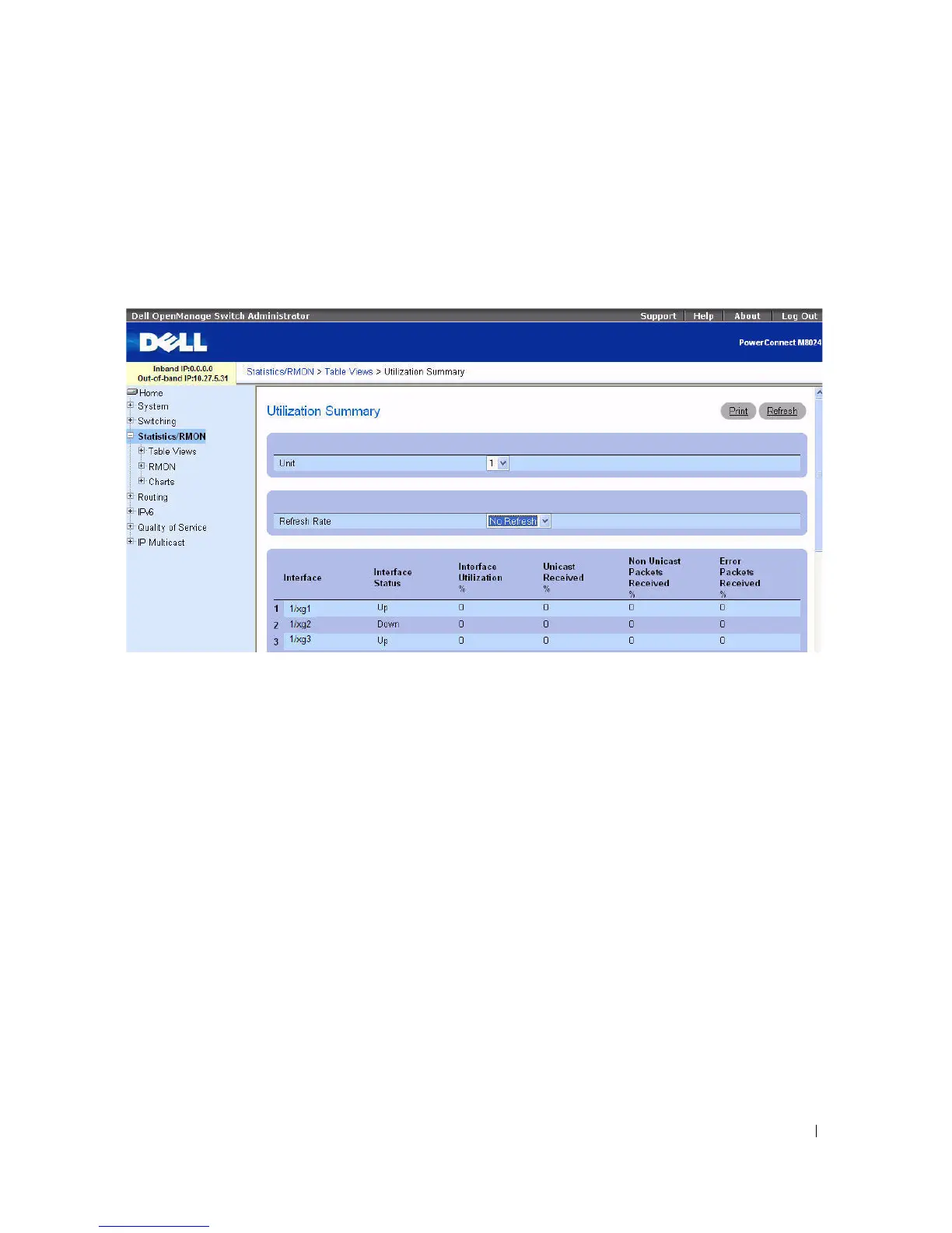 To display the page, click Statistics/RMON > Table Views > Utilization Summary in the tree view.