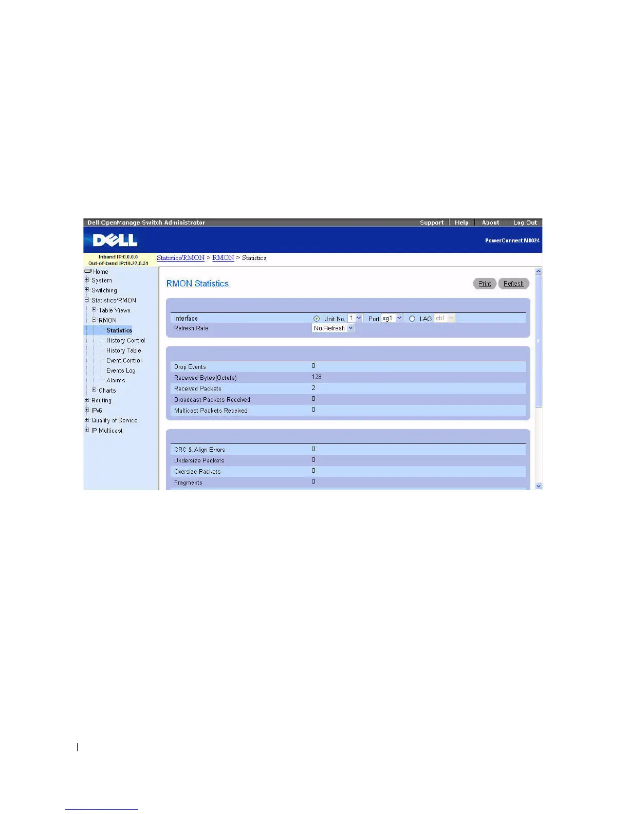 To display the page, click Statistics/RMON > RMON > Statistics in the tree view.