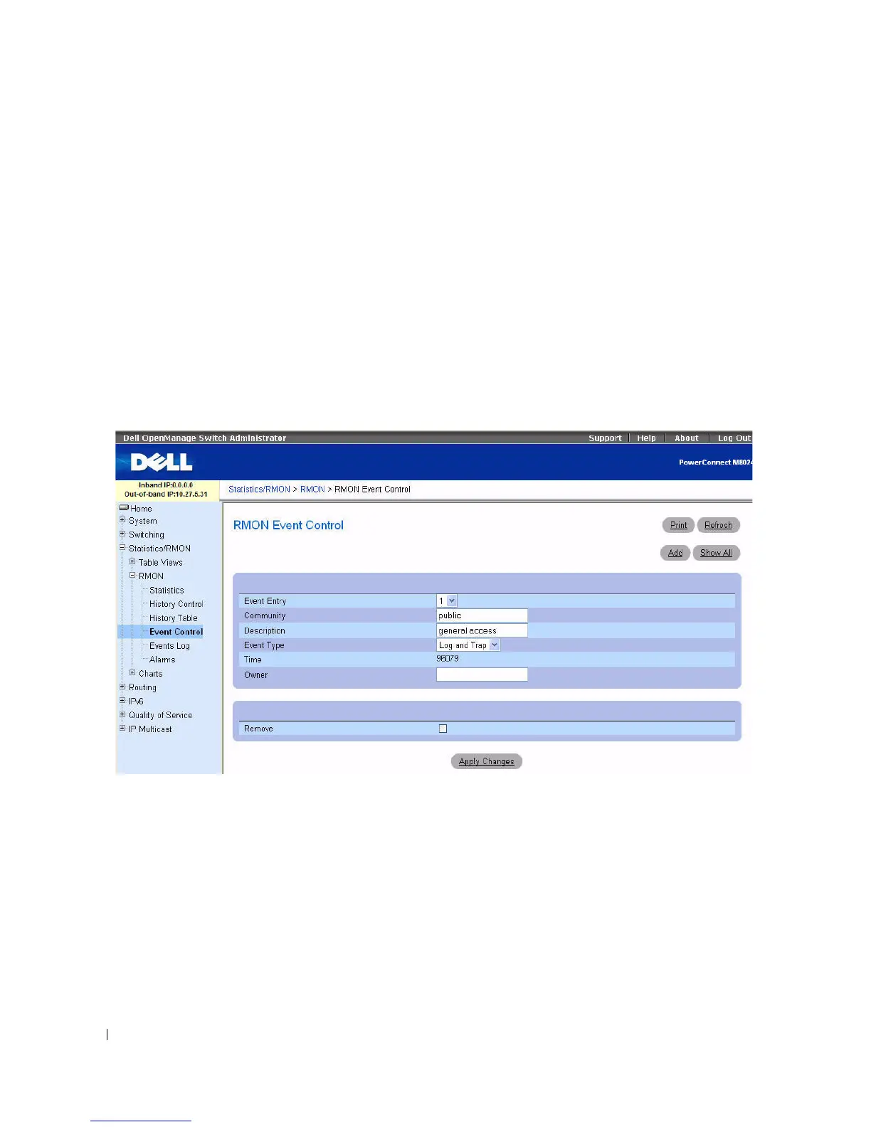 To display the page, click Statistics/RMON > RMON > Event Control in the tree view.