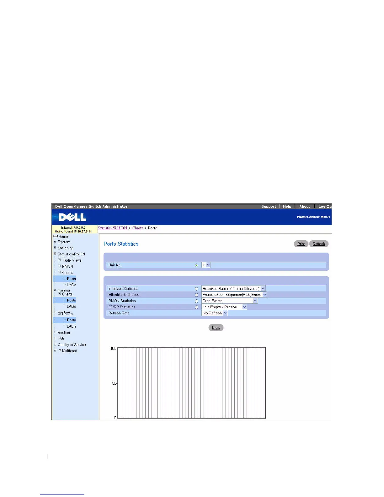 the Charts menu page, click Statistics/RMON > Charts in the tree view. The Charts menu page