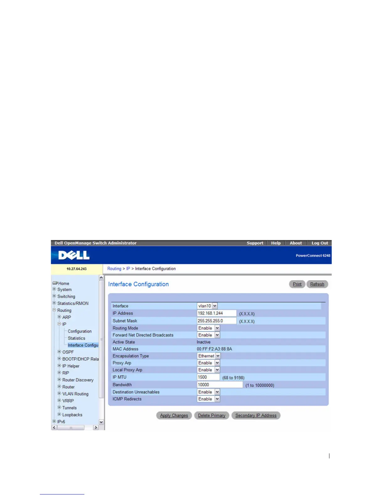 To display the page, click Routing > IP > Interface Configuration in the tree view.