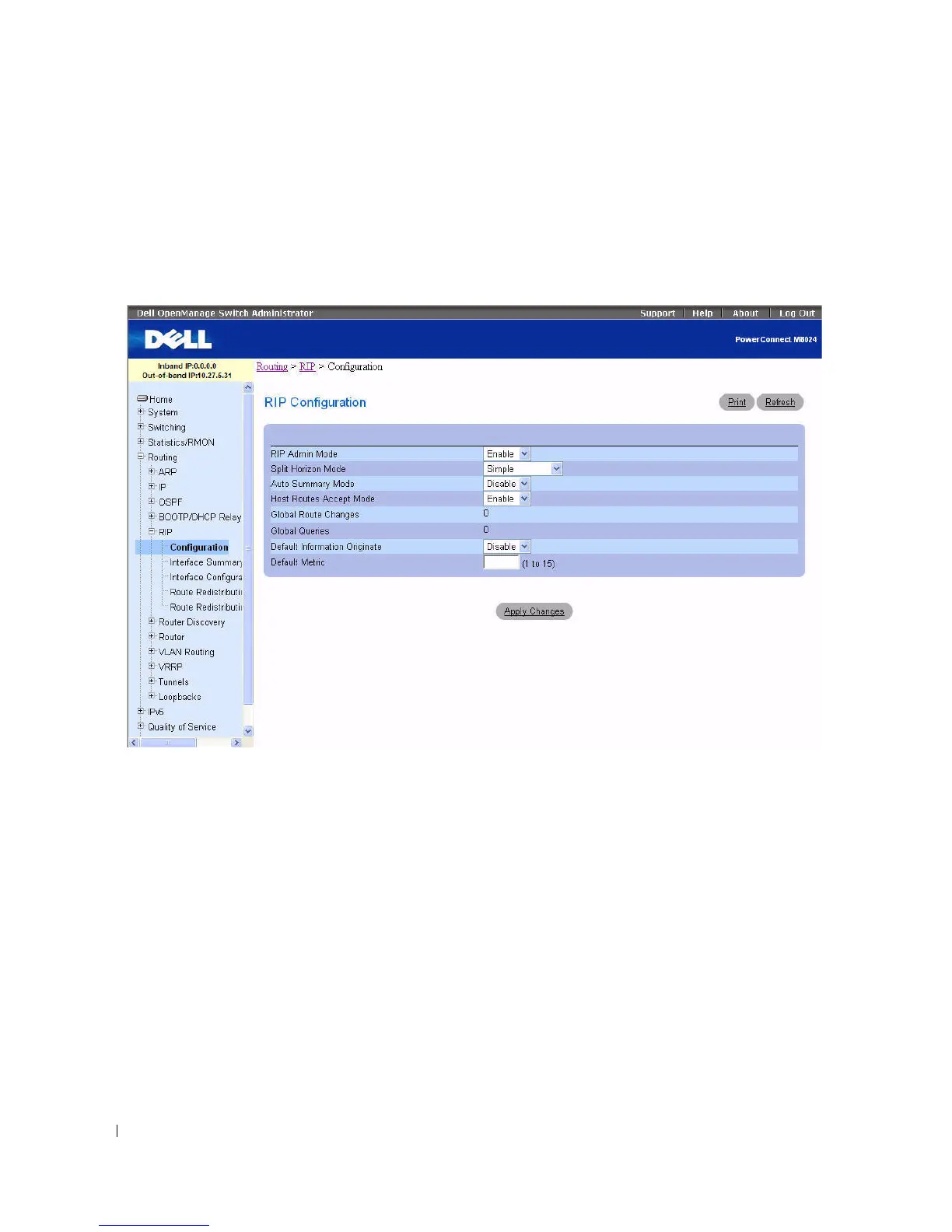 page, click Routing > RIP > Configuration in the tree view.