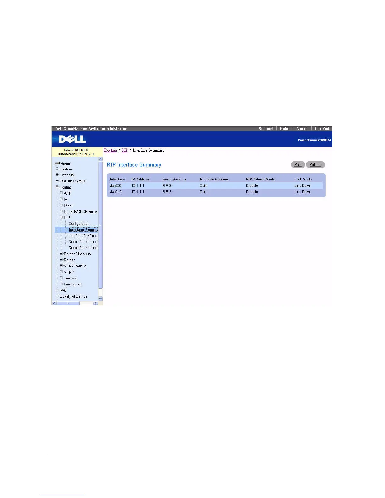 To display the page, click Routing > RIP > Interface Summary in the tree view.