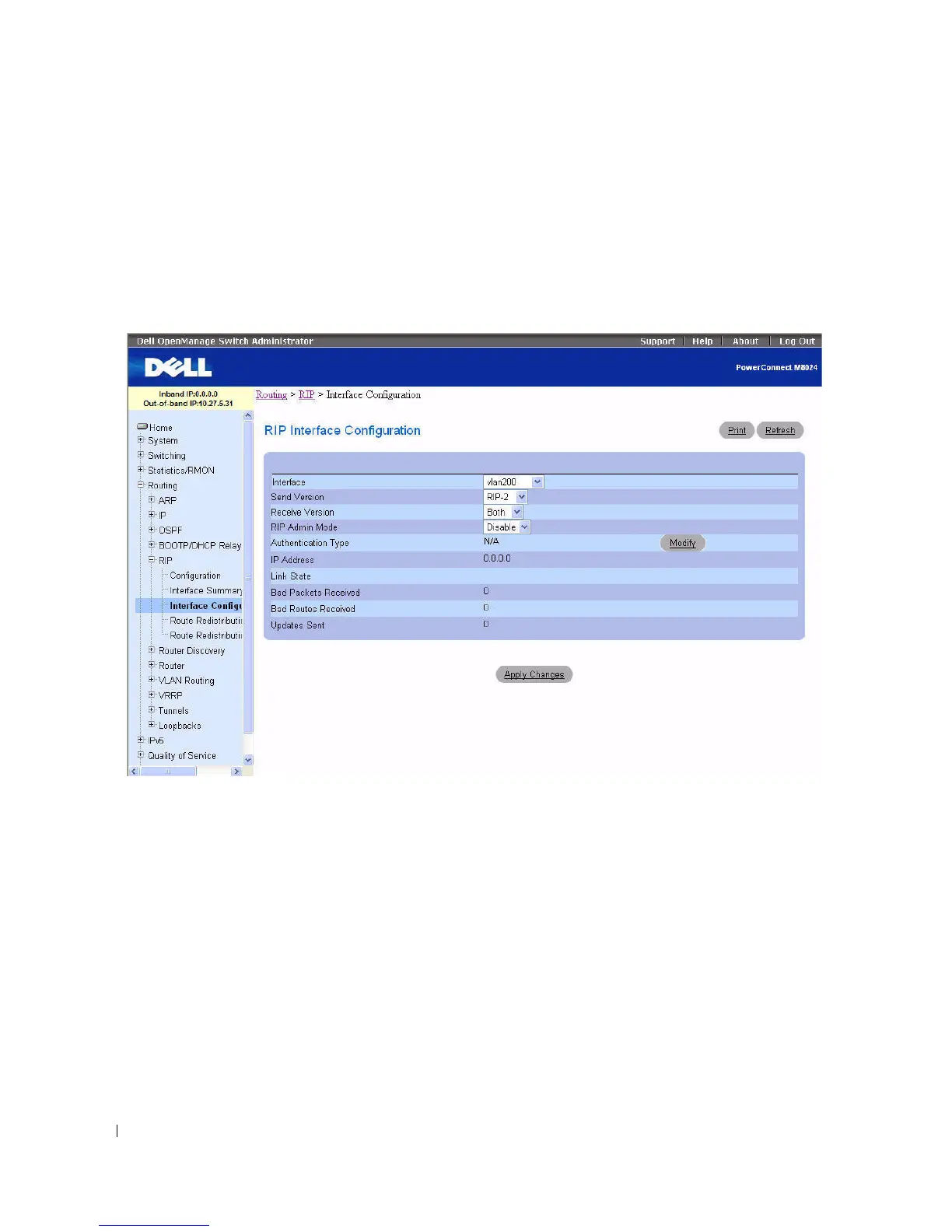 To display the page, click Routing > RIP > Interface Configuration in the tree view.