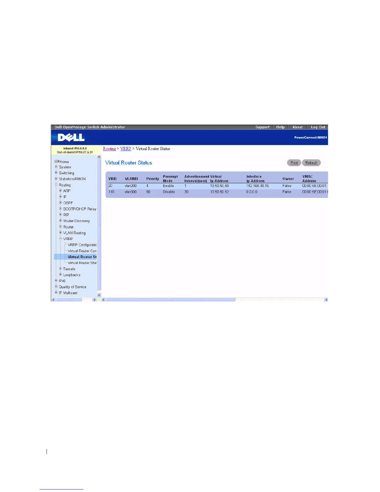 To display the page, click Routing > VRRP > Virtual Router Status in the tree view.