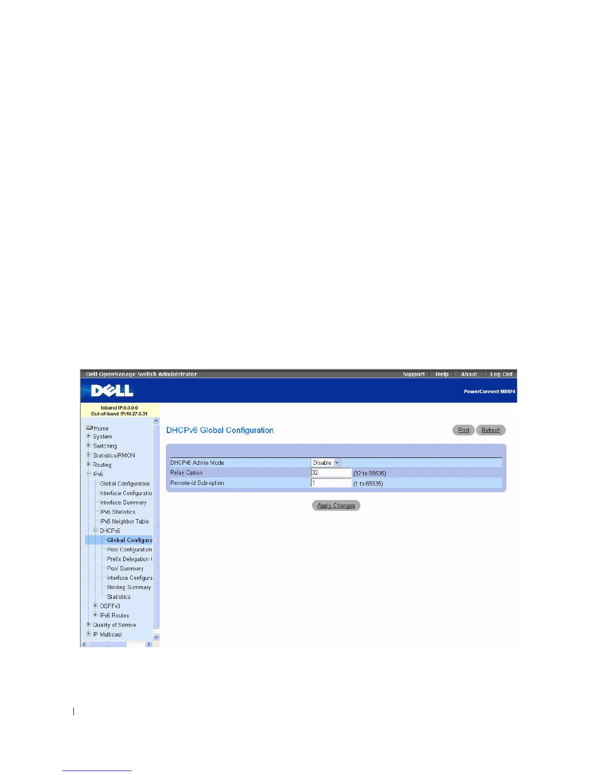 page, click IPv6 > DHCPv6 > Global Configuration in the tree view.