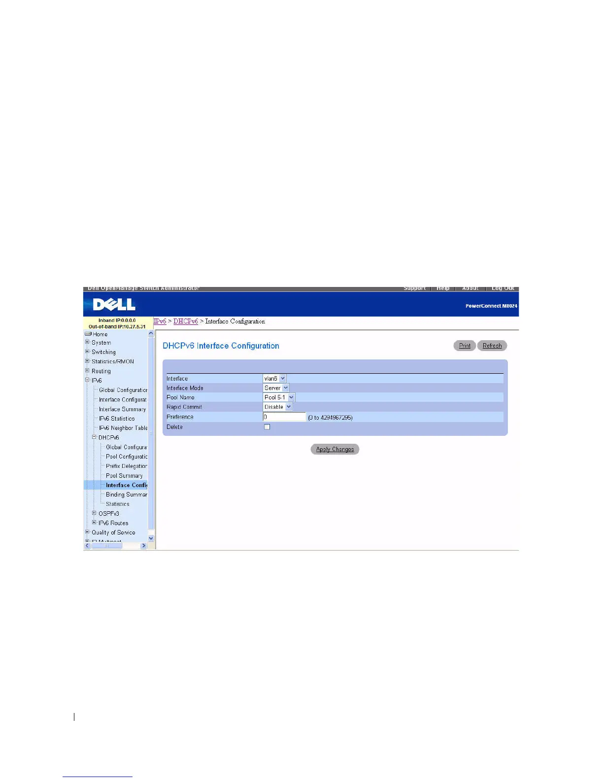 Figure 10-13. DHCPv6 Interface Configuration - Server