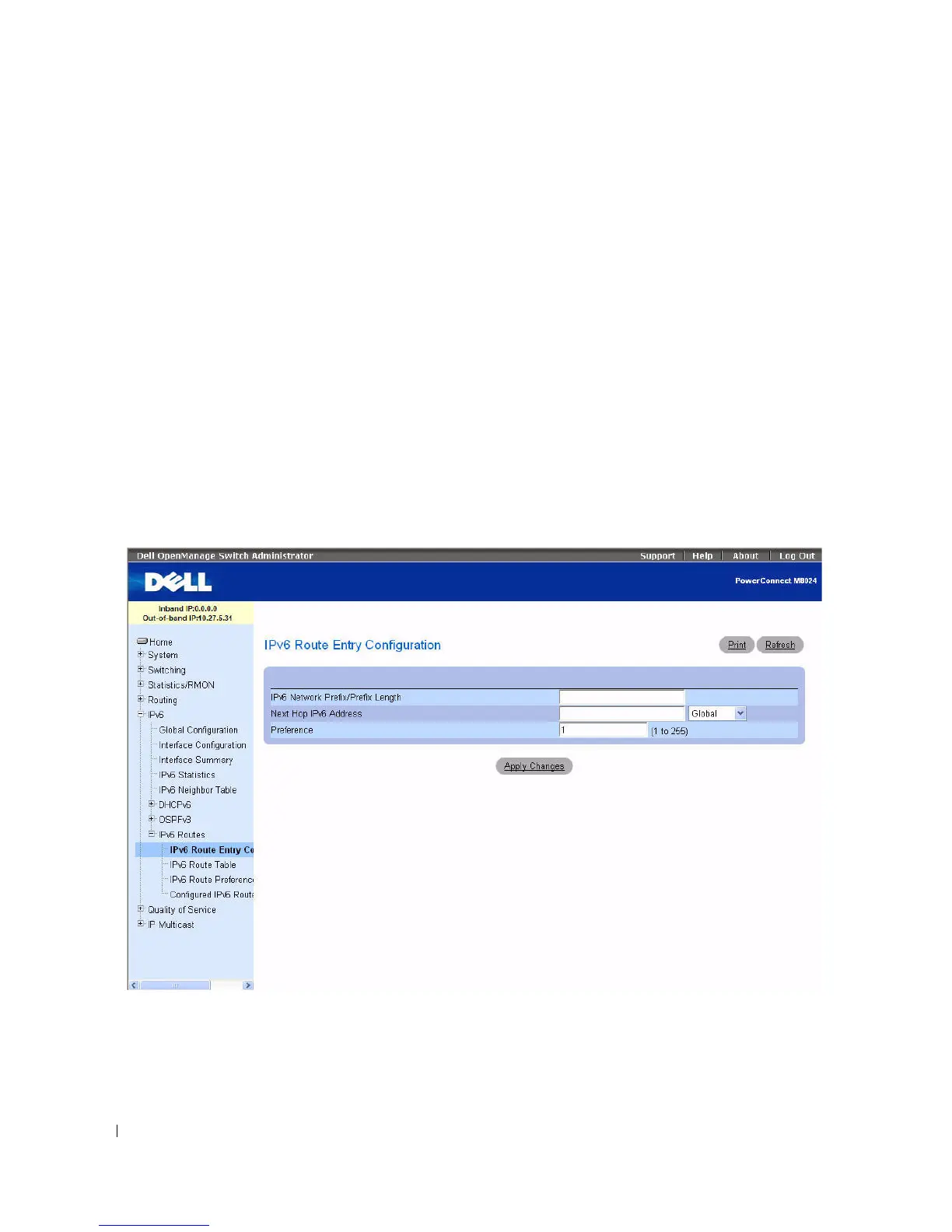 and data. To display this page, click IPv6 > IPv6 Routes in the tree view. Following are the web pages