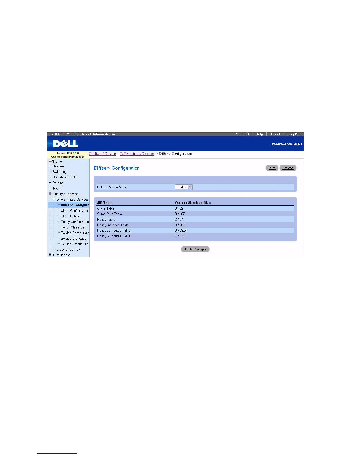page, click Quality of Service > Differentiated Services > Diffserv Configuration in the