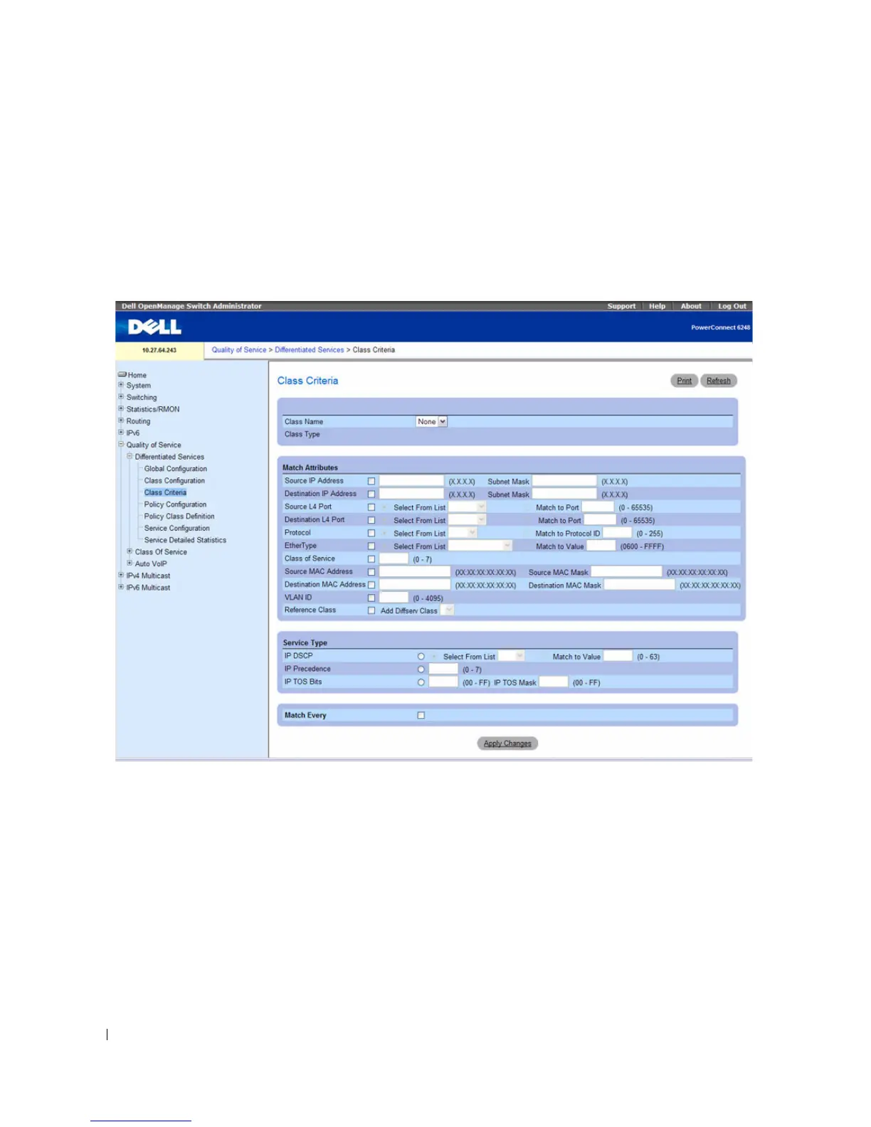 page, click Quality of Service > Differentiated Services > Class Criteria in the tree view.