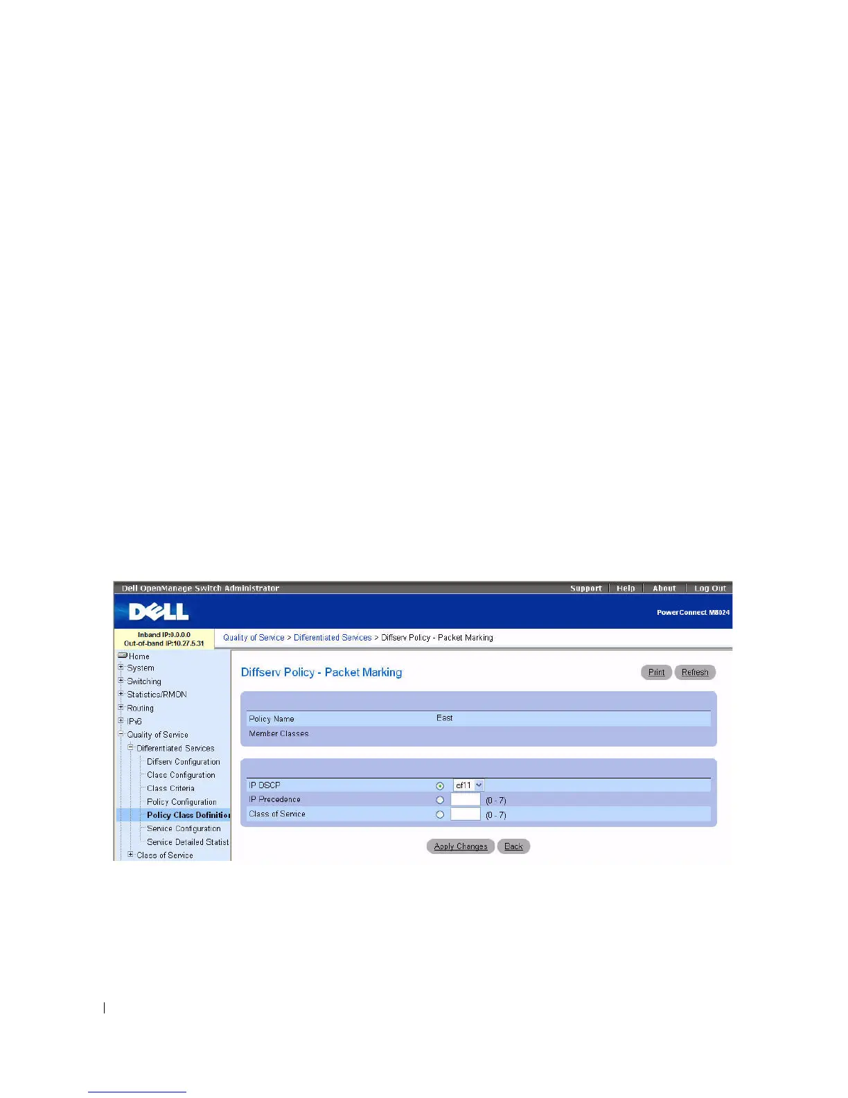 Figure 11-10. Policy Class Definition - Packet Marking
