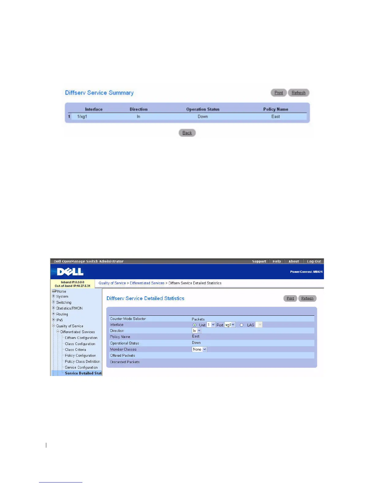 page, click Quality of Service > Differentiated Services > Service Detailed Statistics in